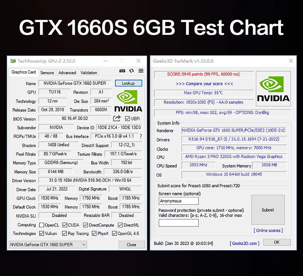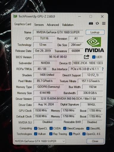 • GPU Model: NVIDIA Geforce GTX 1660Super 6GB