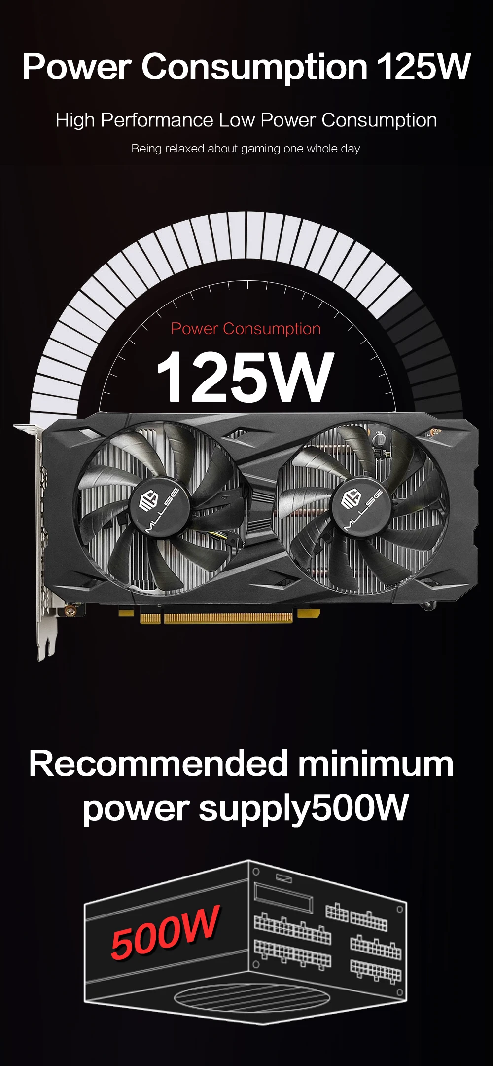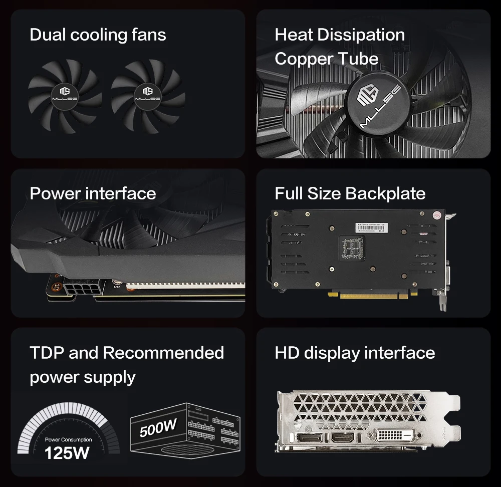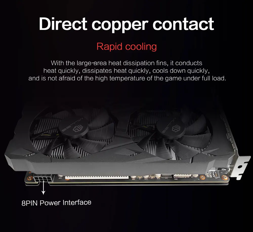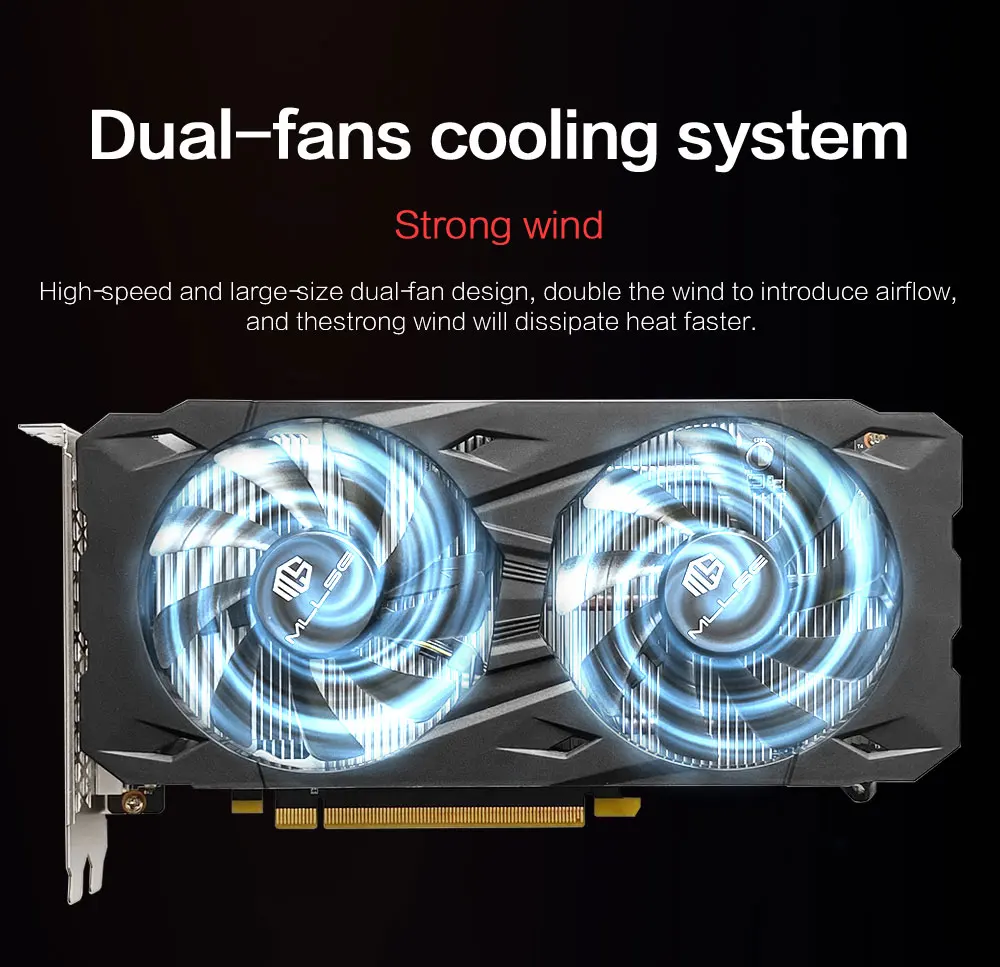 • Dual Fan Design :Stay cool while gaming with the dual fan design, ensuring optimal performance and longevity of the graphics card.