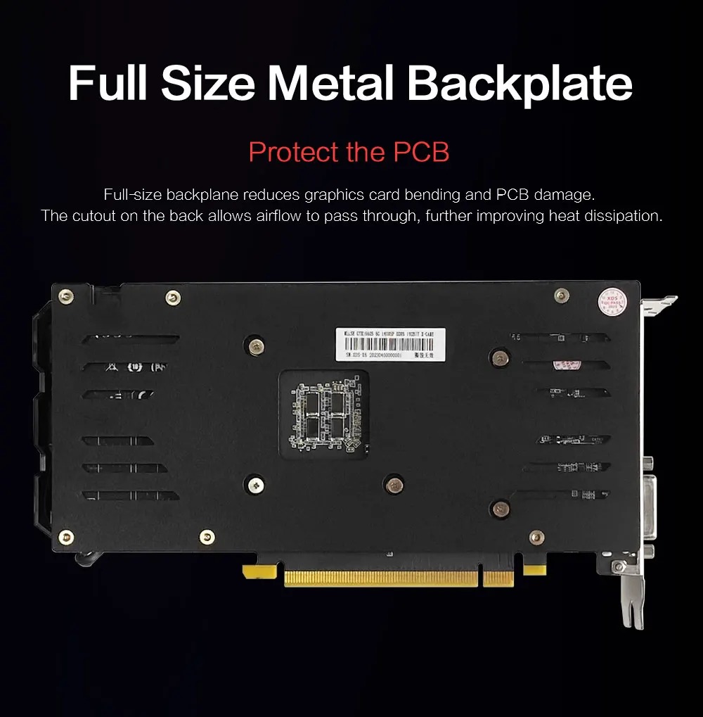 Protect the PCB— Full-size backplane reduces graphics card bending and PCB damage. The cutout on the back allows airflow to pass through, further improving heat dissipation.