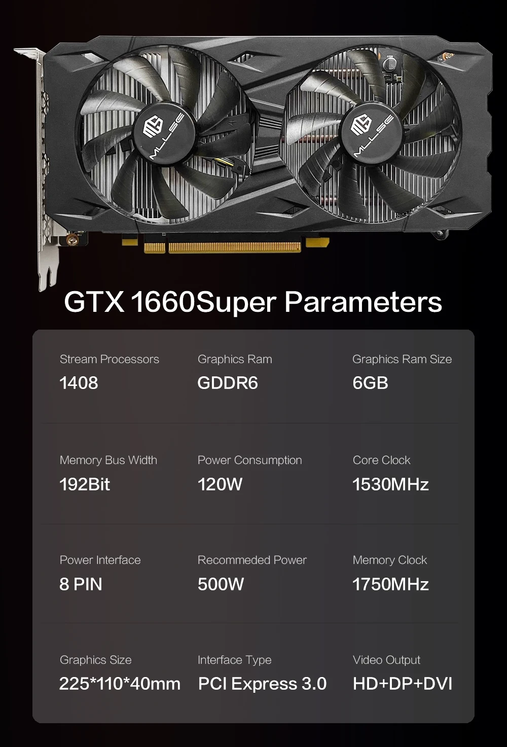 • Powerful Graphics Processor :Experience superior gaming performance with the MLLSE GTX 1660 Super 6GB GDDR6 graphics card, powered by NVIDIA’s robust technology.