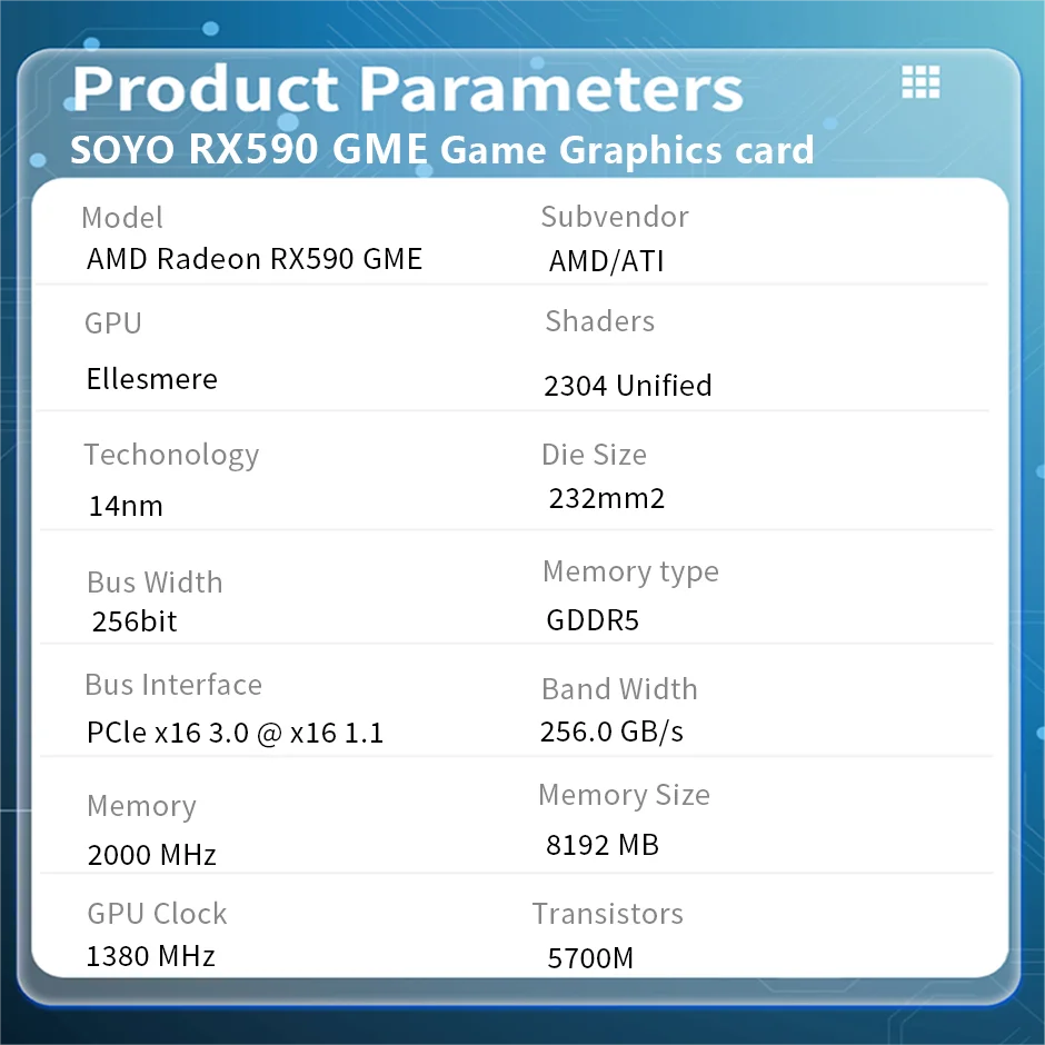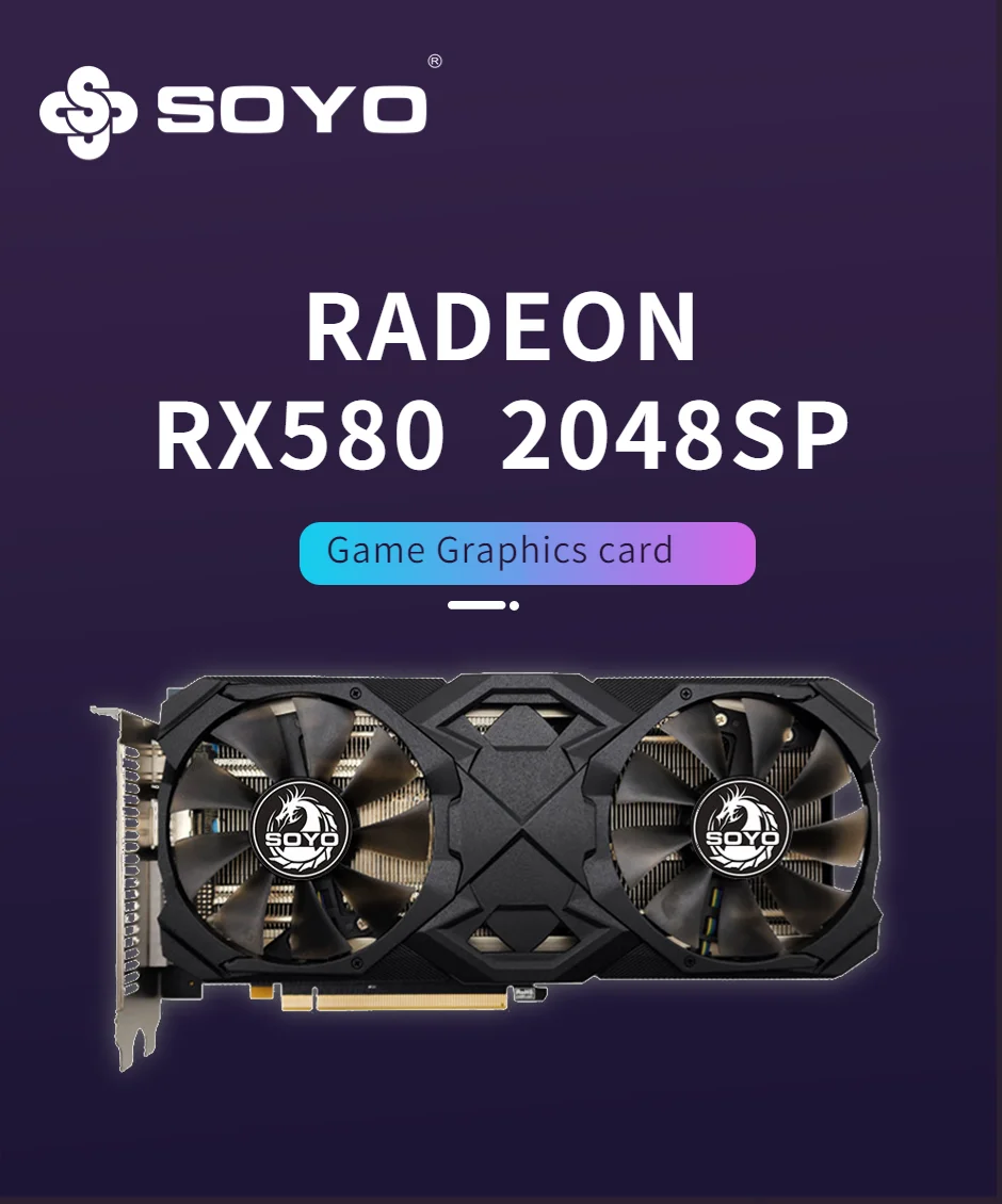 November 28, 2024USED SOYO Card AMD RX580 RX590 GME 8GB Gaming GDDR5 256Bit PCI Express