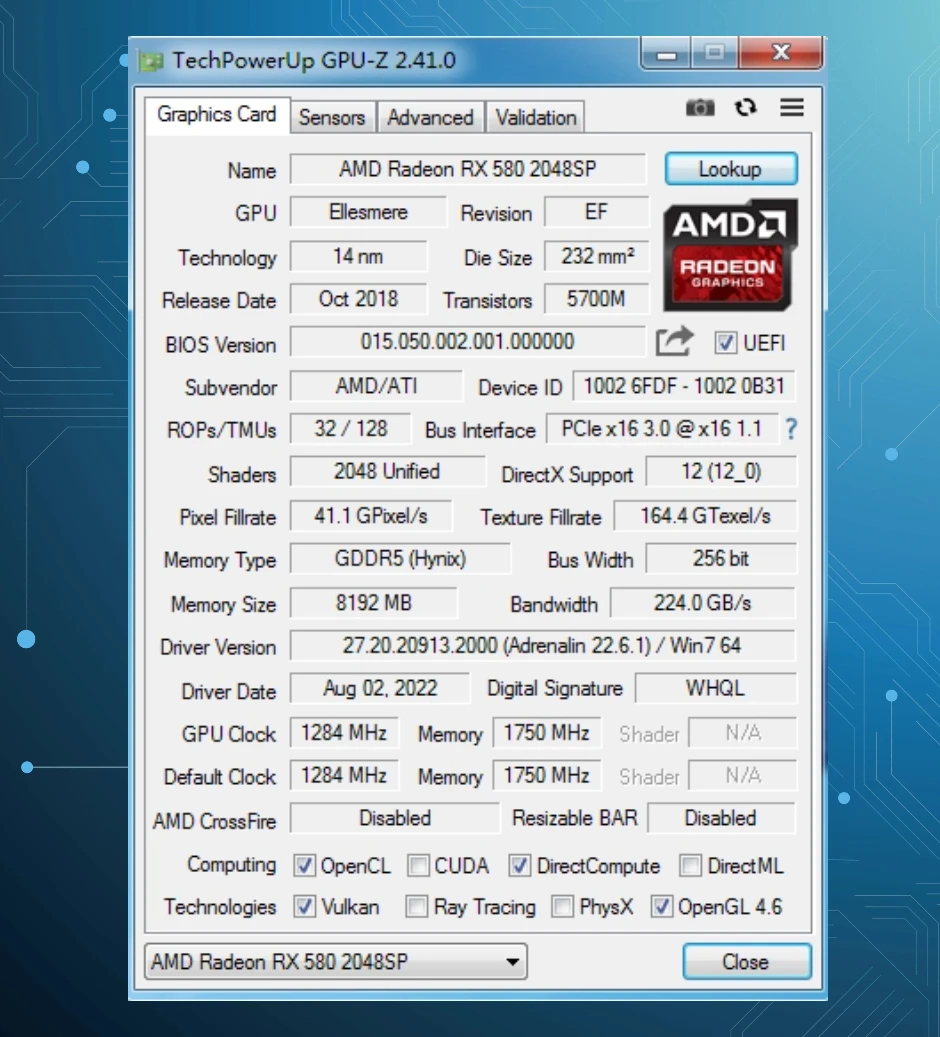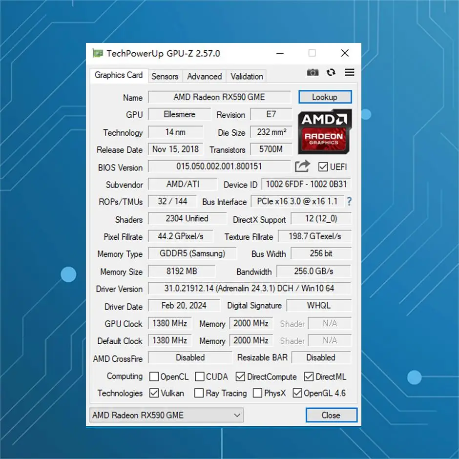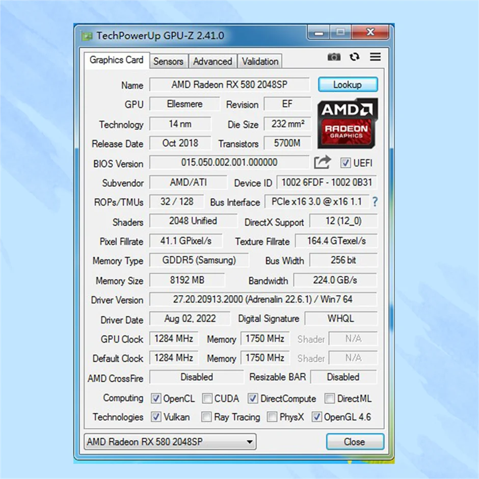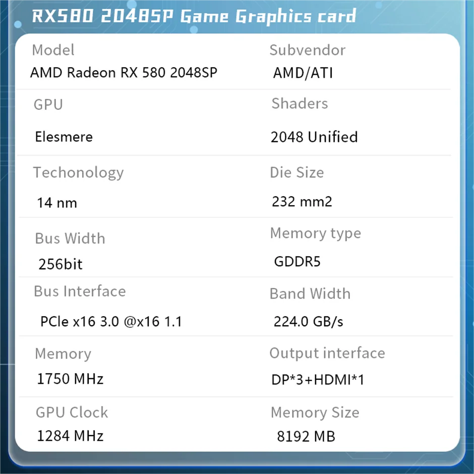 model RX580 2048SP